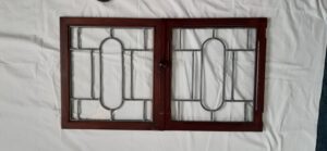 twee gerestaureerde ramen van een ouderwets theekastje….