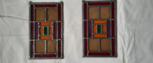 Een tweeling van oud glas, gerestaureerd, beide 47 x 29½ cm. Niet direct beschikbaar. Kan uiteraard wel besteld en gemaakt worden.